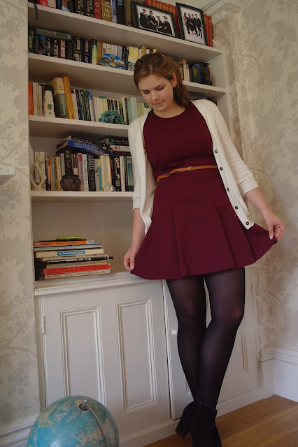 Hi everyone, I hope you're enjoying the weekend! The burst of warm weather didn't last long here in England so I'm back in my spring clothes. I was experimenting earlier and came up with a really subtle smokey eye, which I instantly knew would work with the cranberry dress. (I'm not all that great with eye shadow and tend to avoid it, so I was impressed with the result!) I have no idea what the eye shadows are called. (sorry!) I've had them for a while and the names have all rubbed off.